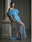 タイト/コラム フロア丈 ビーズ刺繍 フォーマルドレス 花嫁の母のドレス イブニングドレス オーバースカート付きボールガウン フォーマルドレス エレガント ヴィンテージ きらびやかな 半袖 オフショルダー 結婚式 フォーマル サテン スパンコール とともに グリッター素材 ショール