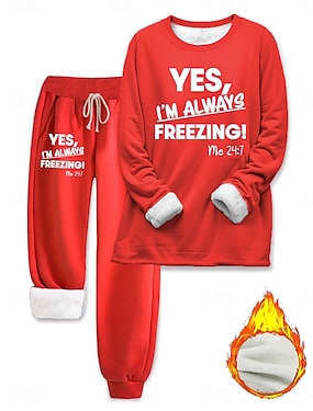 女性用パジャマセット フリースライニング 2 スウェットシャツ トラックスーツ ピース フリースライニング スウェットスーツ トップとパンツ レター 暖かい コンフォート 柔らかい ホーム デイリー ベッド 暖かい 呼吸する クルーネック プルオーバー パンツ エラスティック ウエスト 秋