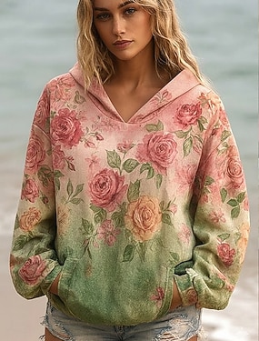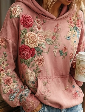 ウィメンズ 3D プリント ビンテージ ボヘミアン フーディ パッチワーク フーディ スウェットシャツ フローラル プルオーバー スウェットシャツ ウォーム アクティブ ビンテージ ロングスリーブ クルーネック ストリート デイリウェア カジュアル パッチワーク ピンク スプリング フォール ウィンター