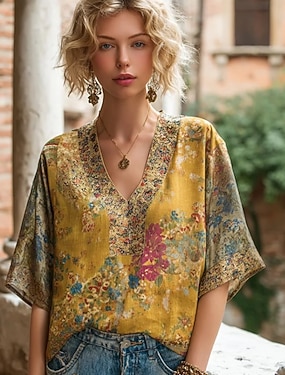 女性用 プルオーバースウェットシャツ ボタン プリント フラワー グラフィック 幾何学模様 ヴィンテージ カジュアル 長袖 クルーネック レギュラートップス カジュアル ストリート 日常着 ブルー ライトブルー ホワイト オレンジ 春 秋 冬