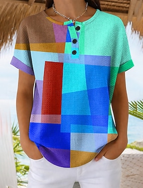 女性用 プルオーバースウェットシャツ ボタン グラフィック 幾何学模様 エレガント ヴィンテージ ファッション 長袖 クルーネック レギュラートップス カジュアル 家 結婚式のゲスト ブルー ダークレッド グリーン レインボー 春 秋 冬