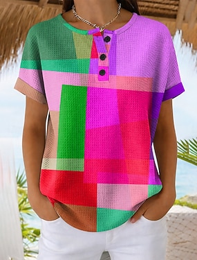 女性用 フーディーズ ボタン グラフィック 幾何学模様 カラーブロック ファッション カジュアル プリント 長袖 クルーネック レギュラートップス カジュアル ストリート ピンク ライトブラウン ライトパープル 夏 春