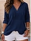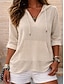 女性用 コットンリネンシャツ 純色 日常 スタイリッシュ ベーシック 長袖 フード付き レギュラートップス 日常 ブルー ネイビーブルー ベージュ 夏 春 秋