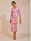 女性用 女性 カジュアルドレス ピンク フラミンゴ 夏 秋 季節の変わり目 ラウンド 旅行度假风 XS S M