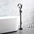 浴槽の蛇口 フロアマウント 自立式浴槽フィラー 真鍮製 高流量シャワー蛇口 ハンドヘルドシャワー ミキサータップ 回転式スパウト