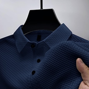 男性用 ワッフルポロシャツ ポロ カジュアル フォーマル バンドカラー 長袖 ファッション 純色 テクスチャード加工 ボタン 平織り 秋冬 秋 春 & 秋 レギュラー ブラック ライトグリーン ライトブルー ネイビーブルー パープル ダークブルー ワッフルポロシャツ