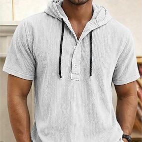 男性用 ワッフルヘンリーシャツ Tシャツ 半袖 純色 ヴィンテージ ボタン ヘンリー アウトドア カジュアル 日常 夏 ブラック ホワイト イエロー ヘンリーTシャツ