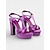 女性用 ヒール ウェディングシューズ サンダル ドレスシューズ キラキラクリスタルスパンコールジュエル きらめく靴 結婚式 パーティー ウェディングサンダル ブライダルシューズ ブライドメイドシューズ ラインストーン クリスタル プラットフォーム チャンキーヒール オープントゥ / ピープトウ エレガント 微生物の革 ブラック ルビーレッド ブルー