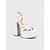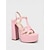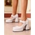 女性用の白とピンクのリボンディテールのつま先が見えるプラットフォームヒール - 結婚式やフォーマルなイベントにぴったりのエレガントなハイヒール