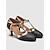 ブローグディテールが施された女性用ヴィンテージスタイルの黒と白のハイヒールパンプス。フォーマルな場面にぴったりのエレガントなドレスシューズ。