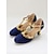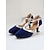 女性用ブルーブロックヒールシューズ - セミフォーマルな集まり、コテージガーデンパーティー、教会の日曜日にぴったりのエレガントなフェイクスエードパンプス