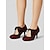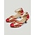 リボン飾り付きレディース ヴィンテージ メリージェーンヒール - フォーマルなイベントに最適な赤いスエードのチャンキーミッドヒールシューズ