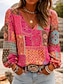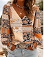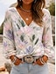 女性用 シャツ ボヘミアンシャツ プリント フラワー グラフィック エレガント ボヘミア 旅行度假风 長袖 Vネック レギュラートップス カジュアル 日常 祝日 ブルー ピンク オレンジ グリーン 夏 春