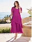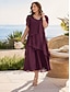 女性用 ミディドレス シフォンドレス エレガント 日常 アウトドア バケーション ルーズフィット 平織り 半袖 クルーネック マルーン フクシャ 夏