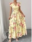 女性用 マキシドレス 花柄ドレス プリントドレス エレガント ファッション 日常 バケーション 祝日 レギュラー フラワー ノースリーブ Vネック ホワイト イエロー 夏 春