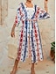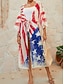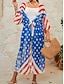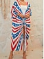 女性用 スイムウェア カバーアップ 水着 旅行度假风 ビーチウェア フラッグ Vネック 長袖 水着
