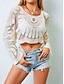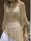 女性用 スイムウェア カバーアップ 水着 レース メッシュ 旅行度假风 ビーチウェア 純色 ラウンドネック 長袖 水着