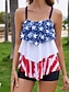 女性用 スイムウェア タンキニ 2ピース ショーツ 水着 おなかコントロール ハイウエスト スリム バックレス 旅行度假风 ビーチウェア フラッグ Uネック ノースリーブ 水着