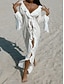女性用 スイムウェア カバーアップ スイムドレス ドレス 水着 フリル 前で結ぶ 旅行度假风 ビーチウェア 平織り Vネック 長袖 水着