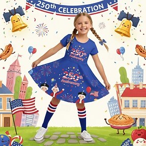 女の子 3D グラフィック 250周年 Tシャツ Tシャツ 半袖 3Dプリント 夏 春 スポーツ ファッション ストリートファッション 子供 4〜12年 クルーネック カジュアル 日常 アウトドア レギュラー