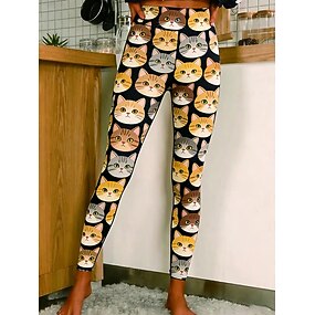 女性用 レギンス 心地よいレギンス 旅行度假风 カジュアル 全長 ハイウエスト グラフィック 猫 プリント 履き心地よい 快適 伸縮性あり カジュアル 日常 バケーション ブラック 春 秋 スリムフィット