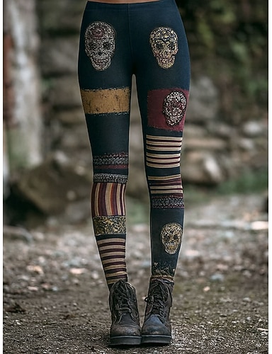 女性用 レギンス 旅行度假风 ヴィンテージ ファッション 足首丈 ハイウエストPantsHalloween グラフィック スカル ハロウィーン プリント ソフト 高通気性 伸縮性あり フォーマル バケーション ストリート ネイビーブルー 春 秋 冬 スリムフィット