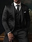 ブラック ホワイト バーガンディ メンズ ウェディング パーティー/イブニング スーツ 無地 3ピース フォーマル スタンダードフィット シングルブレスト ワンボタン