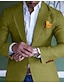 男性用 タキシード リネンスーツ ビーチウェディング カジュアル セージグリーン ライラック 春、夏、秋、冬 スーツ ノッチドラペル ライトウェイト カジュアル ソリッド スタンダードフィット 2点セット シングルブレスト 一つボタン