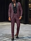 男性用 スーツ 結婚式 ブラック バーガンディー 春、夏、秋、冬 スーツ ノッチドラペル 日常 ビジネス ソリッド テイラーフィット 2点セット シングルブレスト 一つボタン