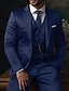 男性用 タキシード スーツ ビーチウェディング 春の結婚式 ブルー 春夏 スーツ ファッション ビジネス ソリッド スタンダードフィット 3点セット シングルブレスト 二つボタン