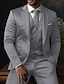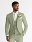 男性用 リネンスーツ ビーチウェディング カジュアル スカイブルー セージグリーン 春、夏、秋、冬 スーツ ノッチドラペル ファッション 日常 ソリッド スタンダードフィット 2点セット シングルブレスト 二つボタン