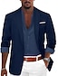 男性用 ブレザージャケット リネンブレザー ノッチカラー ファッション カジュアル ソリッド Blazer ダスティブルー ライト ダークブルー テイラーフィット シングルブレスト 一つボタン