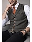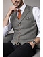 ブラウン グレー メンズ ヘリンボーン ツイード ベスト スタンダード フィット ノッチ シングル ブレスト 五ボタン