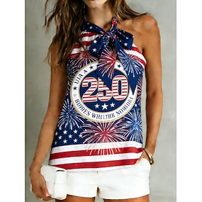 アメリカ独立記念日 女性用 サテントップ タンクトップ ノースリーブシャツ ティートップ ネクタイの結び目 グラフィック アメリカの国旗 ファッション クラシック カジュアル ノースリーブ 冷たい肩 レギュラートップス 日常 お出かけ 週末 ブルー 夏 春