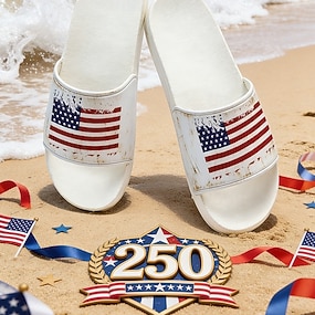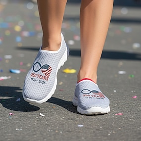 アメリカ合衆国250周年女性用USA国旗グラフィックスリッポンスニーカー - クッションバ breathableのアスレチックシューズ、パレード、USA、旅行、および日常使いのための愛国的スポーツカジュアルスタイル