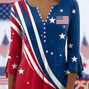 アメリカ独立記念日 女性用 シャツ ボタン プリント グラフィック アメリカの国旗 エレガント ヴィンテージ トロピカル風 長袖 シャツカラー レギュラートップス 日常 ワーク ブルー ブラック ホワイト ルビーレッド 夏 春 秋