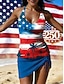 アメリカ独立記念日 女性用 ミディドレス シフトドレス サンドレス 旅行度假风 カジュアル アウトドア ルーズフィット 星条旗 ノースリーブ クルーネック 青と白 オーシャンブルー レッドとブルー 夏 春