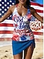 独立記念日 アメリカ 記念日 愛国心 女性 水着 タンキニ スカート スイムスーツ エレガント バケーション グラフィック フラッグ ホルターネック 袖なし 浴衣