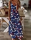 独立記念日 愛国的な女性用 マキシドレス Aラインドレス スリップドレス バケーション カジュアル 外出用 レギュラーフィット グラフィック フラッグ スリーブレス Vネック スパゲッティストラップ 青 ネイビー ネイビーブルー 夏 春