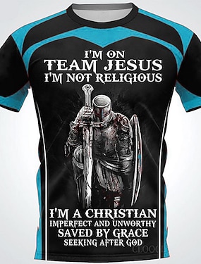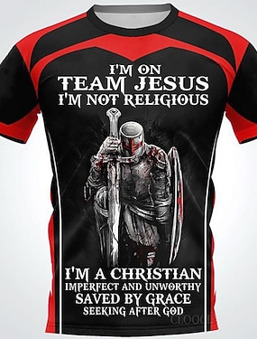 男性用チームイエスクリスチャン信仰グラフィックTシャツ - 宗教的ではない、恵みによって救われた、ショートスリーブTシャツ