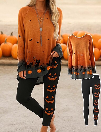 ハロウィン ウィメンズ T シャツ パンプキン 長袖 グラフィック ヴィンテージ スタイリッシュ カジュアル 長袖 クルーネック ロング トップス デイリープリント ブラック ホワイト イエロー オレンジ 春 秋 プレフォール