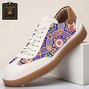 エスニック柄のジャカード生地を使用したメンズスニーカー。普段使いや旅行に最適なカジュアルストリートシューズ。