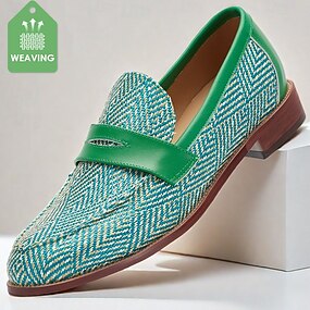 メンズ マルチカラー ウーブン ペニーローファー – スマートカジュアル アウトフィットに最適なヴィンテージ ナイロン ニット スリッポン ドレスシューズ