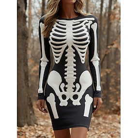 Halloween 女性用 ミニドレス T シャツドレス ボディコンドレス 旅行度假风 カジュアル パーティー 日常 スリム グラフィック スカル 長袖 クルーネック ホワイト ルビーレッド パープル グリーン 春 秋 冬