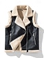 男性用 レザーベスト スポーツ・アウトドア オートバイ カジュアル 普段着 トレンディー 秋 フェイクファートリム 合皮 保温 防雨 ライトウェイト ピュアカラー ジッパ- ラペル ルーズフィット ブラック ベスト