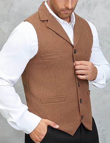 男性用 ベスト チョッキ ジレ バケーション パーティー ビジネス ファッション カジュアル 春 秋 ボタン ポケット 羊毛 快適 純色 シングルブレスト 一つボタン フラットカラー レギュラー ブラウン アーミーグリーン グレー ベスト