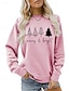 クリスマス 女性用 ブラウス クリスマスツリー カジュアル 長袖 クルーネック レギュラートップス 祝日 お出かけ プリント ブラック ホワイト イエロー ピンク カーキ色 秋 冬