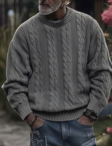 男性用 プルオーバーセーター ニットセーター リブ ニット レギュラートップス ニット 平織り クルーネック ファッション ベーシック バケーション デイリーウェア 衣類 秋 冬 ブラック ホワイト M L XL