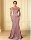 シース/コラムイブニングガウン エレガント ドレス ケープオーバーレイ フォーマル ウェディングゲスト フロアレングス ノースリーブ ワンショルダー サテン プリーツ フリル