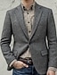 男性用 ツイードブレザー ノッチカラー ファッション クラシック カジュアル ソリッド Blazer ブラック ブラウン グレー スタンダードフィット シングルブレスト 2つボタン